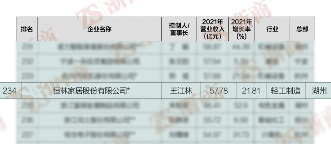 榮耀時刻 | 恒林榮登“2022浙商全國500強“