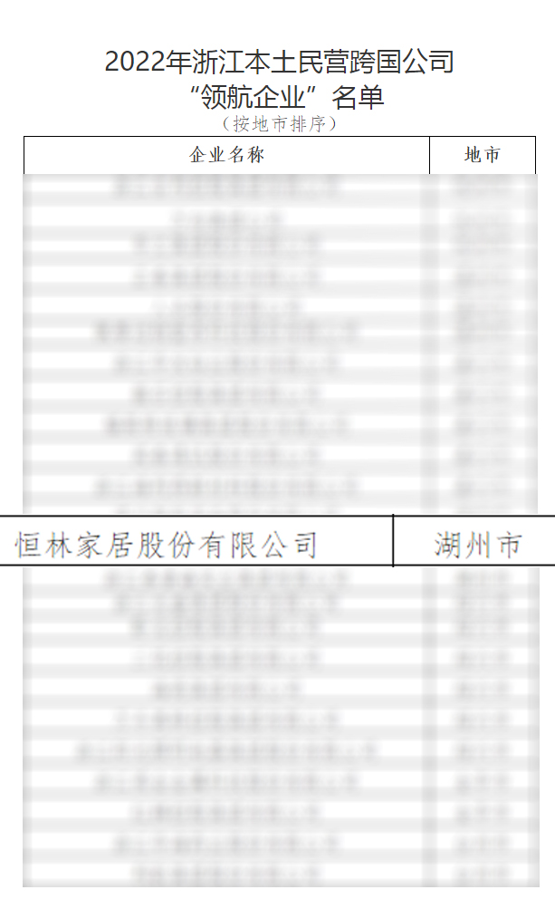 在11月30日舉行的第五屆浙江本土跨國公司成長論壇暨“絲路領(lǐng)航”新三年行動計劃啟動儀式上,浙江省商務(wù)廳發(fā)布了2022年度浙江本土民營跨國公司“領(lǐng)航企業(yè)”名單,恒林家居股份有限公司(以下簡稱“恒林股份”)連續(xù)三年入選該榜單!