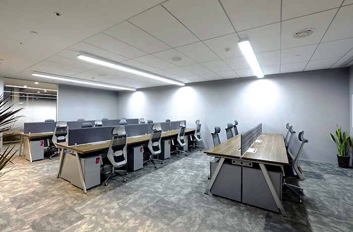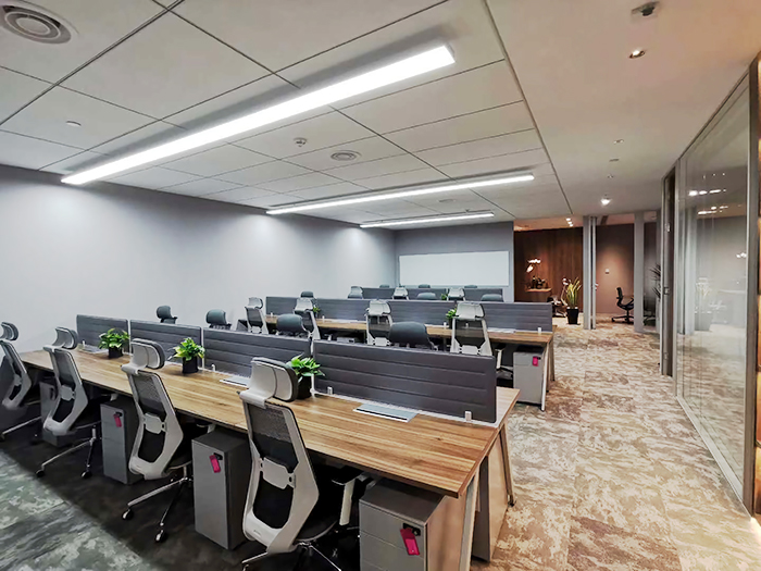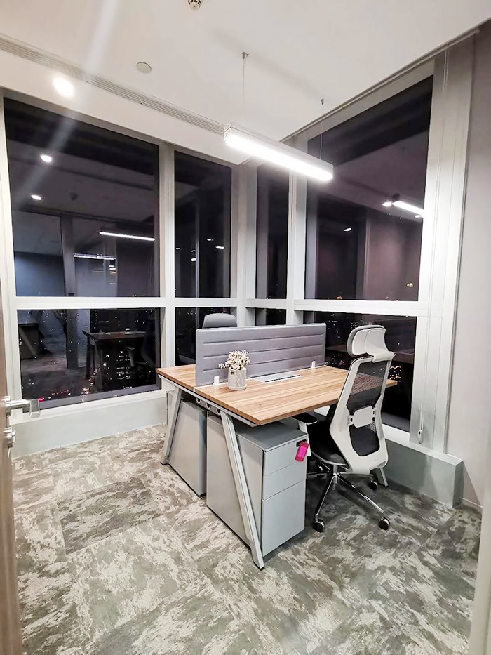 吉樹的辦公區(qū)域都是采用的開放式辦公,因此這種開放式的工位被大面積的使用,原木色桌面搭配綠植,給人更好的心情,灰色擋板搭配灰色辦公椅呼應灰色的墻面,營造一種冷靜、謹慎的工作環(huán)境,窗邊的吧椅方便員工進行獨立思考、分析。